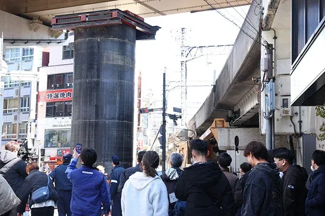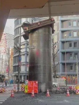 เมื่อช่วงเช้าที่ผ่านมา [ตามเวลาท้องถิ่น] ได้พบท่อโลหะขนาดใหญ่ เส้นผ่านศูนย์กลางประมาณ 4 เมตร ซึ่งเดิมถูกฝังอยู่ใต้ดิน โผล่พุ่งขึ้นมาจากพื้นถนนบริเวณไซต์ก่อสร้างระบบท่อระบายน้ำ บนทางหลวงแห่งชาติ ในเขตคิตะ จังหวัดโอซาก้า ประเทศญี่ปุ่น