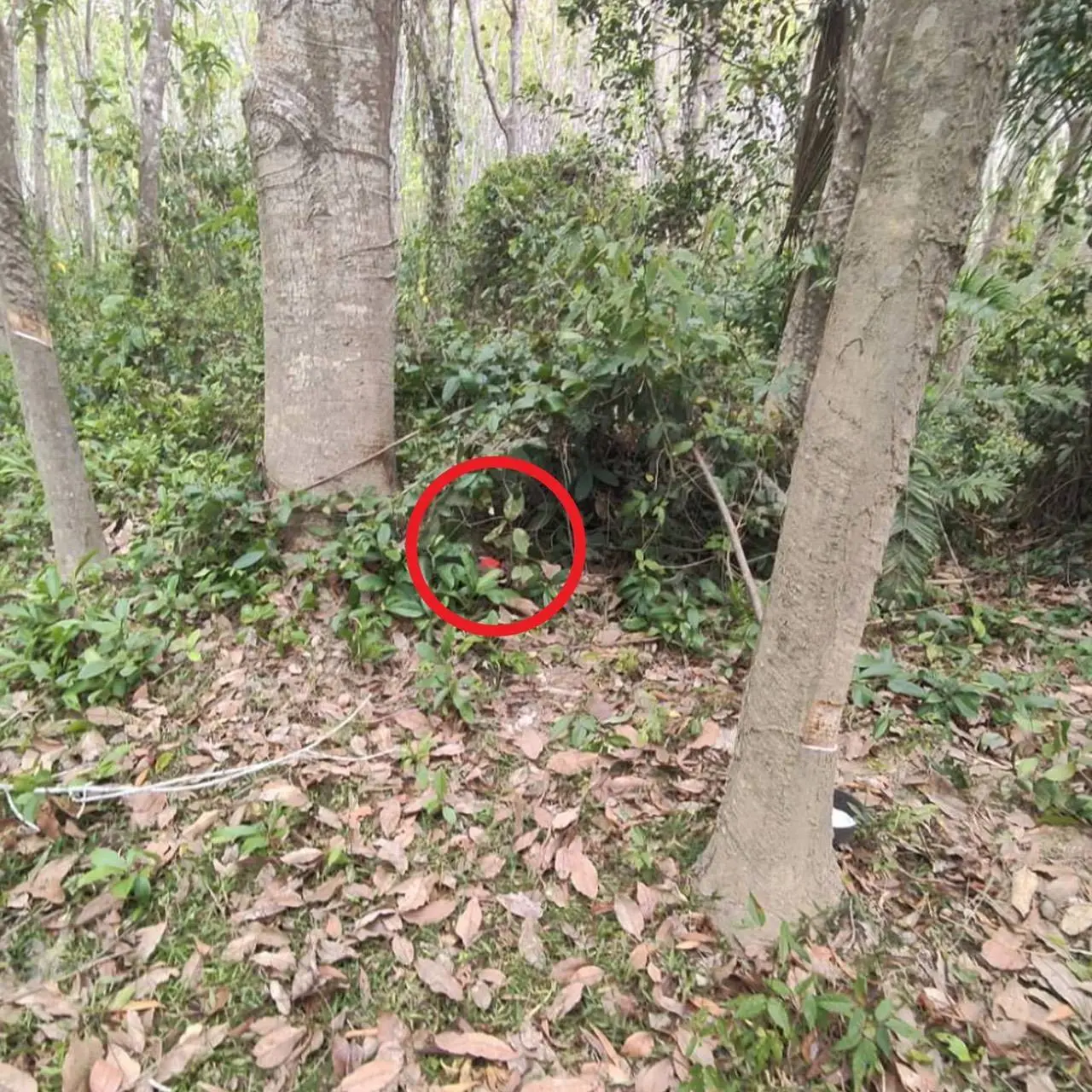 ระหว่างการตรวจสอบบริเวณสวนยางพารา เจ้าหน้าที่พบ วัตถุต้องสงสัยถูกซุกซ่อนอยู่ในพงหญ้า โดยมีลักษณะเป็น แบตเตอรี่ที่ถูกลากสายไฟเชื่อมต่อออกมา คล้ายการจัดเตรียมเป็นวงจรไฟฟ้า เบื้องต้นคาดว่าอาจเป็น ส่วนประกอบของวงจรจุดชนวนระเบิดแสวงเครื่อง (IED)