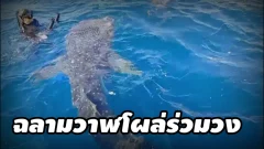 นทท.ตื่นเต้น ฉลามวาฬ ยักษ์ใหญ่ใจดีโผล่อวดโฉมร่วมวงนทท.เล่นน้ำที่เกาะพีพี