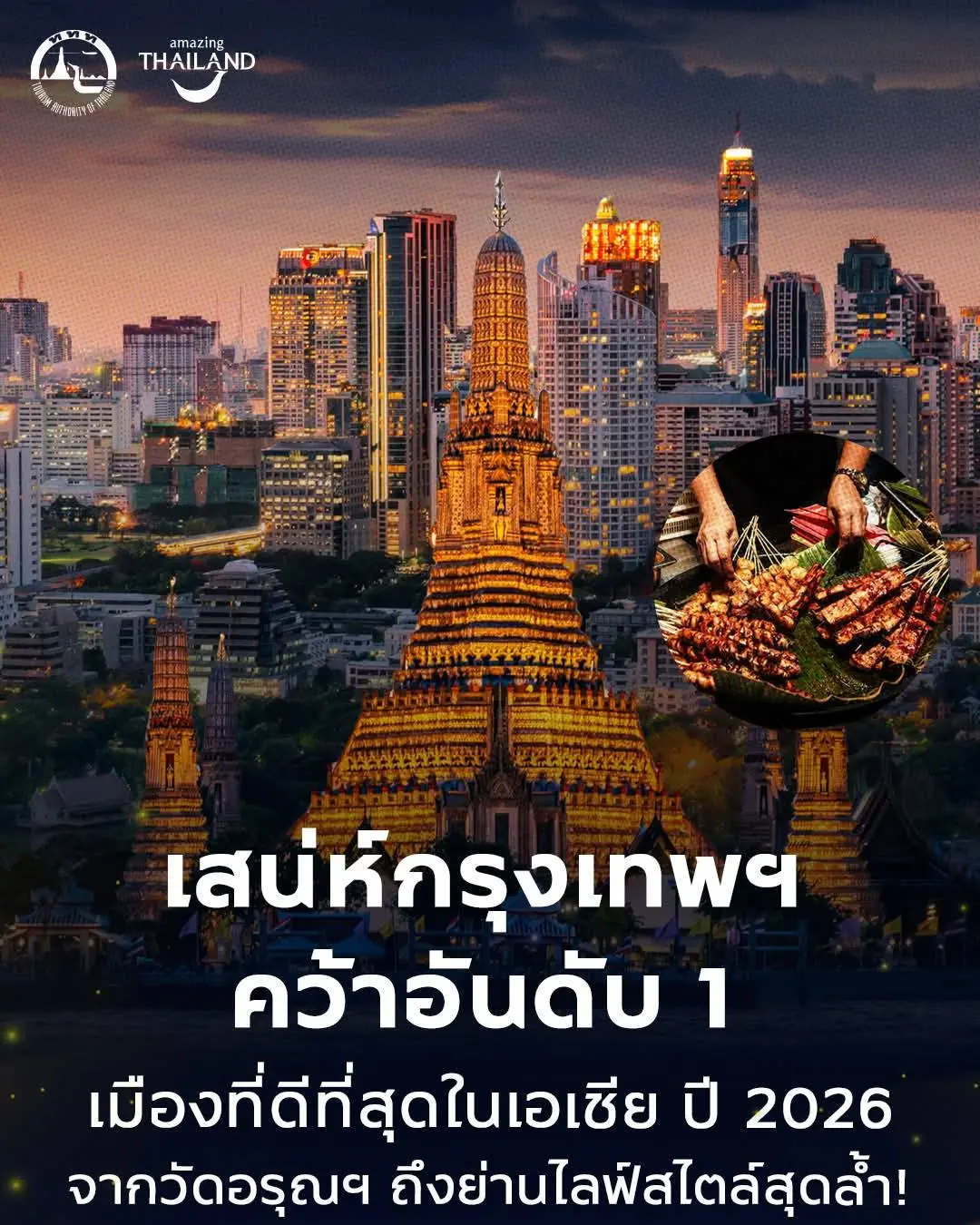 กรุงเทพฯขึ้นแท่นเมืองดีที่สุดในเอเชีย 2026