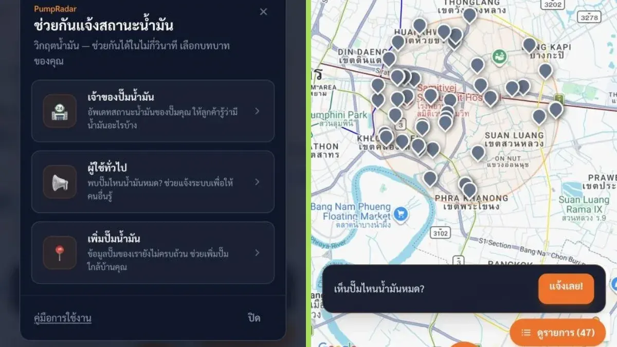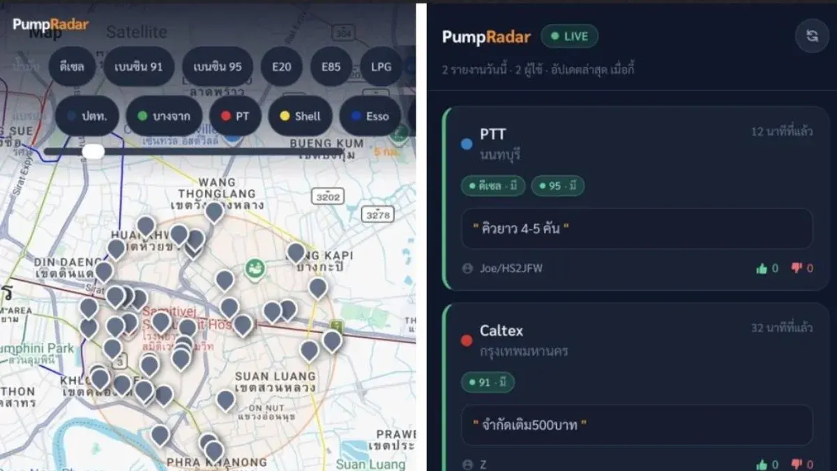 "PumpRadar" เว็บเช็กปั๊มน้ำมันเรียลไทม์ ตัวช่วยอัจฉริยะในยุคพลังงานผันผวน..ฝีมือคนไทย