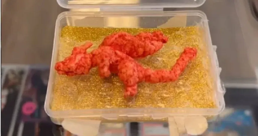 ตามบันทึกสถิติโลกกินเนสส์ ชีโตสตัวนี้มีความยาว 8 เซนติเมตร จำลองปีกและหางอันเป็นเอกลักษณ์ของชาริซาร์ดจากโปเกมอนได้อย่างสมบูรณ์แบบ เพื่อปกป้อง "ของว่าง" ราคาแพงชิ้นนี้ ผู้ขายได้ติดตั้งมันลงบนฐานการ์ดโปเกมอนที่ทำขึ้นเป็นพิเศษ และปิดผนึกไว้ในกล่องแสดงผลโปร่งใส ป้องกันไม่ให้ใครเผลอกินของสะสมพิเศษชิ้นนี้เพราะความหิวชั่วขณะ