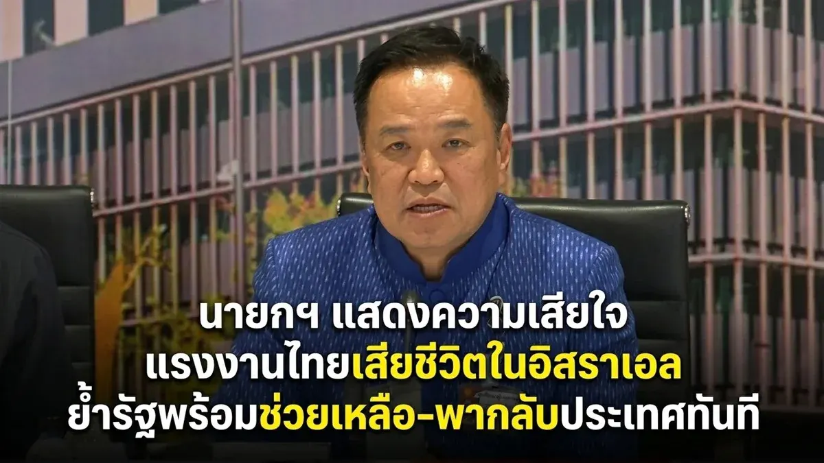 นายกรัฐมนตรีแสดงความเสียใจต่อกรณีแรงงานไทยเสียชีวิตจากเหตุการณ์ความไม่สงบในประเทศอิสราเอล ท่ามกลางสถานการณ์ความตึงเครียดในตะวันออกกลางที่ยังคงยืดเยื้อ พร้อมยืนยันว่ารัฐบาลไทยพร้อมให้ความช่วยเหลืออย่างเต็มที่แก่คนไทยในพื้นที่