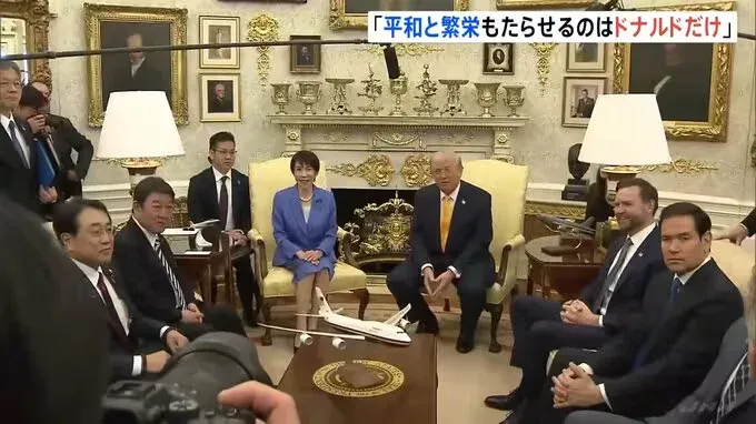 โดย "ซานาเอะ ทากาอิจิ" เดินทางถึงทำเนียบขาว ท่ามกลางการต้อนรับจาก "โดนัลด์ ทรัมป์" และ ท่ามกลางความสนใจของทั่วโลก การประชุมสุดยอดผู้นำก็ได้เริ่มต้นขึ้น ในช่วงต้นของการหารือ นายกรัฐมนตรีทาคะอิจิได้กล่าวต่อประธานาธิบดีทรัมป์ เกี่ยวกับสถานการณ์ในตะวันออกกลางว่า "ฉันเชื่อว่ามีเพียง "โดนัลด์ ทรัมป์" เท่านั้นที่สามารถนำพาสันติภาพ และ ความเจริญรุ่งเรืองมาสู่โลกได้ ด้วยเหตุนี้ ฉันจึงต้องการประสานงานกับประเทศต่างๆ และ ให้การสนับสนุนอย่างจริงจัง วันนี้ฉันมาที่นี่เพื่อถ่ายทอดเรื่องนี้!!"