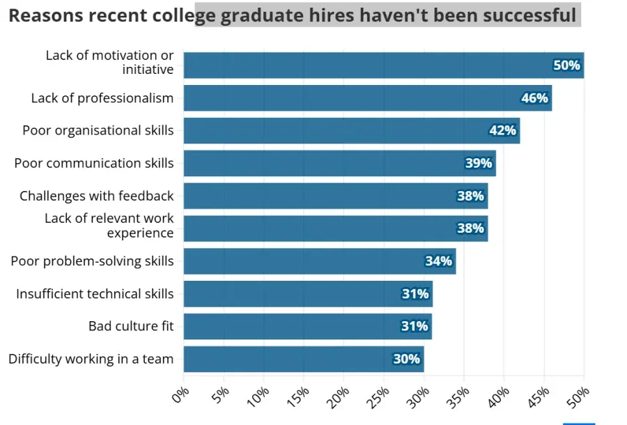 บริษัทหลายแห่งเปิดเผยว่า พนักงาน Gen Z บางส่วนมีปัญหาในการปรับตัวจากรั้วมหาวิทยาลัยสู่ชีวิตการทำงานจริง โดยมีสถิติที่น่าตกใจว่า 1 ใน 6 ของนายจ้าง ลังเลที่จะจ้างเด็กจบใหม่ และบริษัทกว่า 60% ยอมรับว่าเคยเลิกจ้าง Gen Z ที่เพิ่งรับเข้ามาในปีนั้นๆ