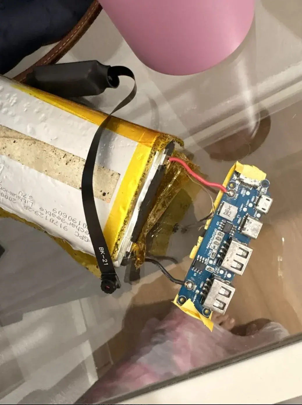 เมื่อทำการตรวจสอบอย่างละเอียด พบเลนส์กล้องขนาดเล็ก ที่มีไฟสีแดงแสดงสถานะการทำงานซ่อนอยู่ภายในช่อดอกไม้ ที่น่าตกใจยิ่งกว่านั้นคือ "ฟองน้ำ" ที่ใช้ปักดอกไม้ แท้จริงแล้วเป็นพาวเวอร์แบงก์ ที่ทำหน้าที่จ่ายไฟให้กล้องอย่างต่อเนื่อง อีกทั้งอุปกรณ์ดังกล่าวยังทำงาน ผ่านการเชื่อมต่อ Wi-Fi อีกด้วย
