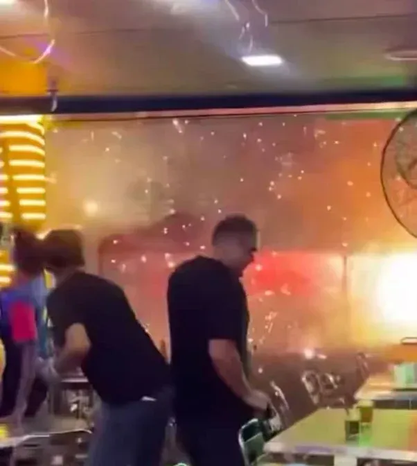 โดยวิดีโอดังกล่าว มีความยาวประมาณ 53 วินาที ซึ่งได้บันทึกช่วงเวลาตึงเครียด เมื่อแผงขายริมถนนเกิดระเบิดขึ้นอย่างกะทันหัน พร้อมประกายไฟและเปลวเพลิงขนาดใหญ่ โดยประชาชน รวมถึงพนักงานและ ลูกค้าในร้านอาหารใกล้เคียง ต่างพากันวิ่งหนีด้วยความตื่นตระหนกเพื่อความปลอดภัยของตัวเอง ในขณะที่สถานที่ๆได้รับผลกระทบ จำเป็นต้องปิดให้บริการ...