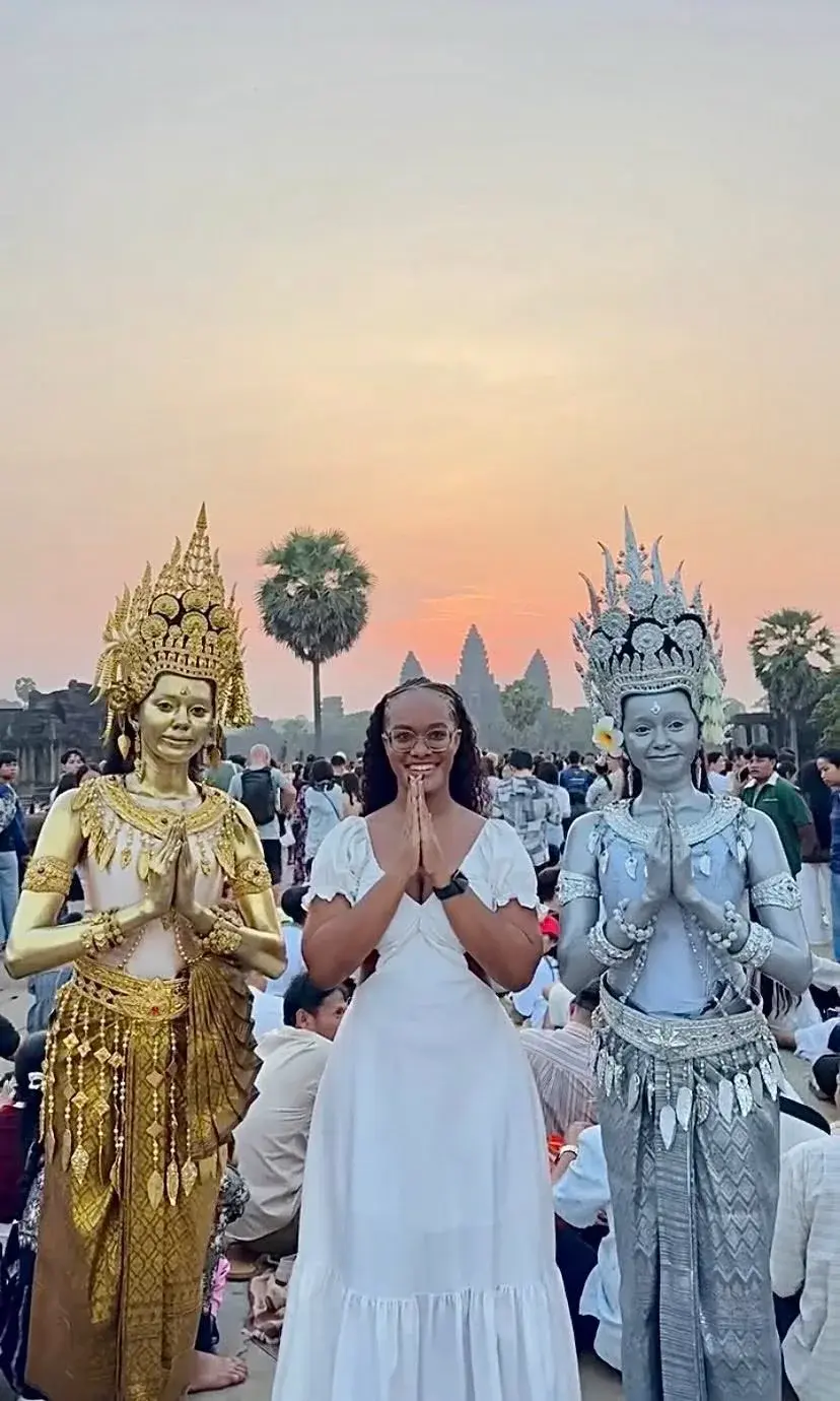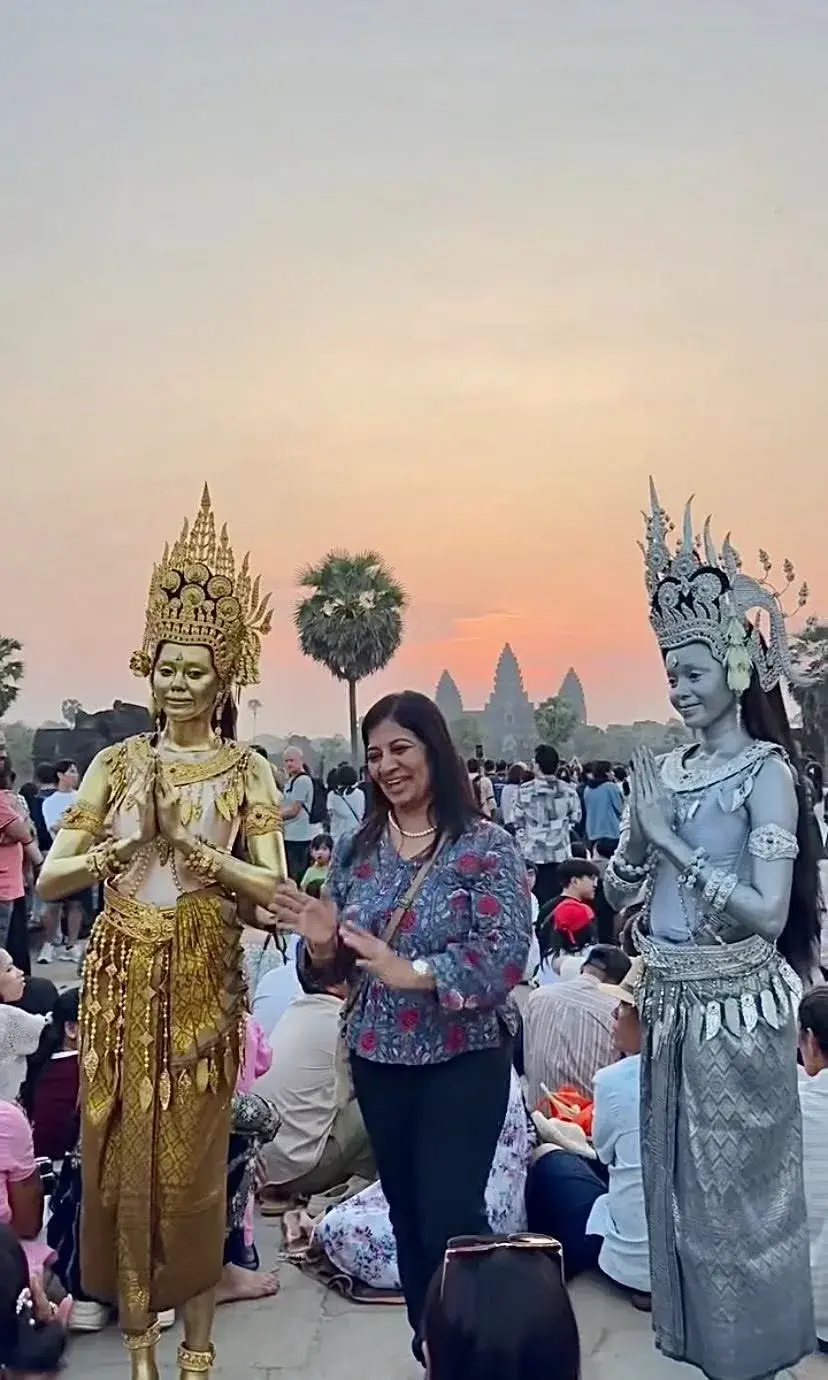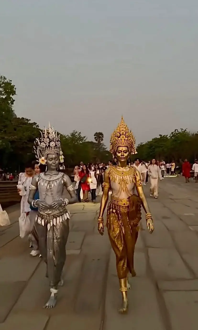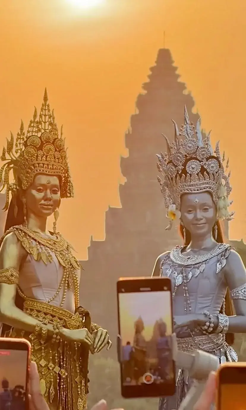 เสน่ห์ของนครวัดในยามเช้า ไม่ได้อยู่เพียงแค่ความงามของแสงแรก แต่ยังอยู่ในบรรยากาศที่ค่อย ๆ เปลี่ยนผ่านจากความมืดสู่ความสว่าง เงาของยอดปราสาททอดตัวนิ่งอยู่เหนือผืนน้ำ เสียงผู้คนรอบข้างเบาบางลงโดยไม่ได้นัดหมาย ราวกับทุกคนรู้ดีว่าเบื้องหน้าคือวินาทีพิเศษที่ไม่ควรถูกรบกวนด้วยเสียงใด ๆ