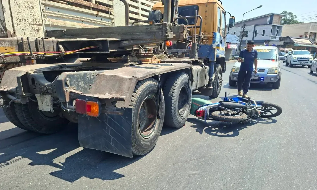 เคราะห์ซ้ำ! ลุงตระเวนหาซื้อน้ำมันใส่รถไถ ตั้งแต่เช้า หน้ามืดวูบ เฉี่ยวบรรทุกเจ็บเล็กน้อย