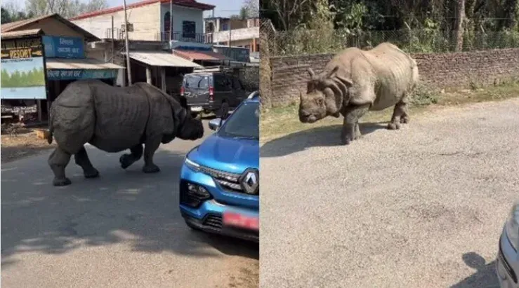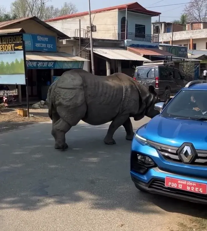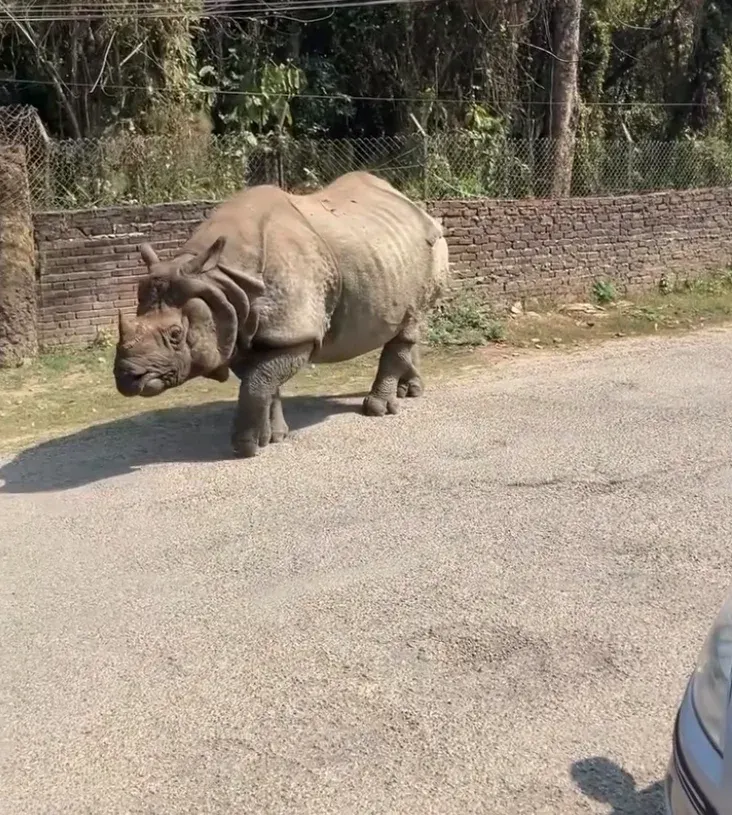 นักท่องเที่ยวงง หลังพบแรดยักษ์ เดินร่อนกลางหมู่บ้าน ในขณะที่ชาวบ้านเมินเฉย