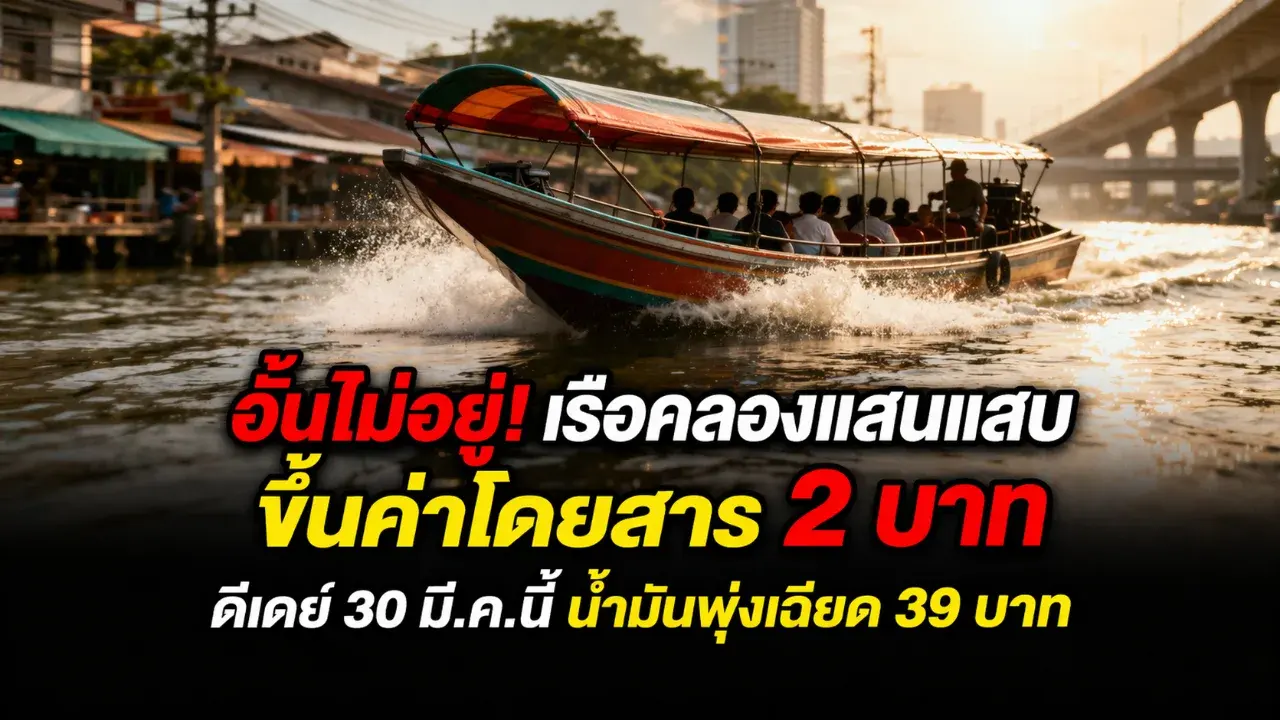 อั้นไม่อยู่! เรือคลองแสนแสบขึ้นค่าโดยสาร 2 บาท ดีเดย์ 30 มี.ค.นี้ น้ำมันพุ่งเฉียด 39 บาท ลุ้นรอบใหม่ 6 เม.ย.