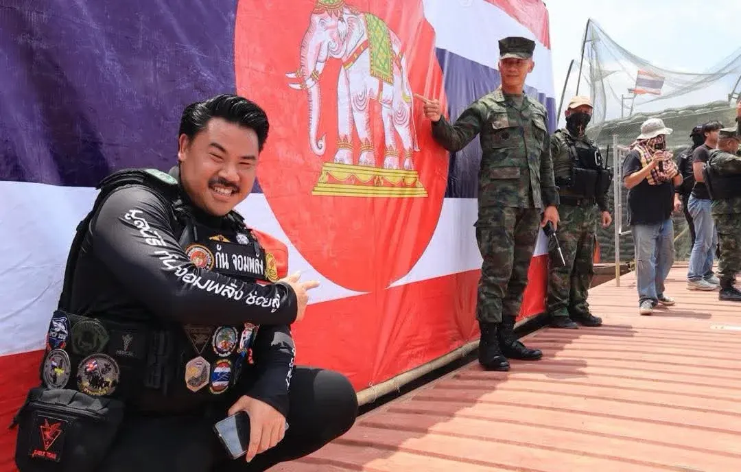 ท่ามกลางแรงกดดันดังกล่าว “กันจอมพลัง” ตัดสินใจตอบโต้เชิงสัญลักษณ์ ด้วยการปลดเชือกและกางธงชาติไทยขนาดใหญ่ รวมถึงธงราชนาวี บริเวณรั้วตู้คอนเทนเนอร์ เพื่อย้ำจุดยืนอย่างชัดเจนว่าพื้นที่ดังกล่าวคืออธิปไตยของไทย