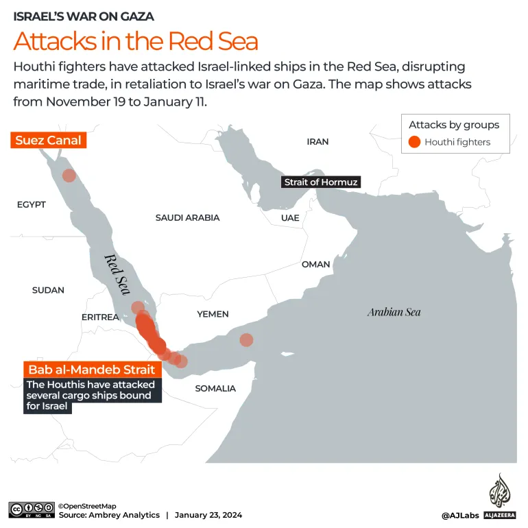 ตั้งแต่เดือนพฤศจิกายน 2023 ถึงมกราคม 2025 กลุ่มกบฎฮูตีได้โจมตีเรือพาณิชย์มากกว่า 100 ลำด้วยขีปนาวุธและโดรน ทำให้เรือจม 2 ลำ และ มีลูกเรือเสียชีวิต 4 ราย ซึ่งในปี 2024 รัฐบาล "โดนัลด์ ทรัมป์" ได้เปิดปฏิบัติการโจมตีต่อกลุ่มกบฎฮูตี ซึ่งยุติลงหลังจากไม่กี่สัปดาห์