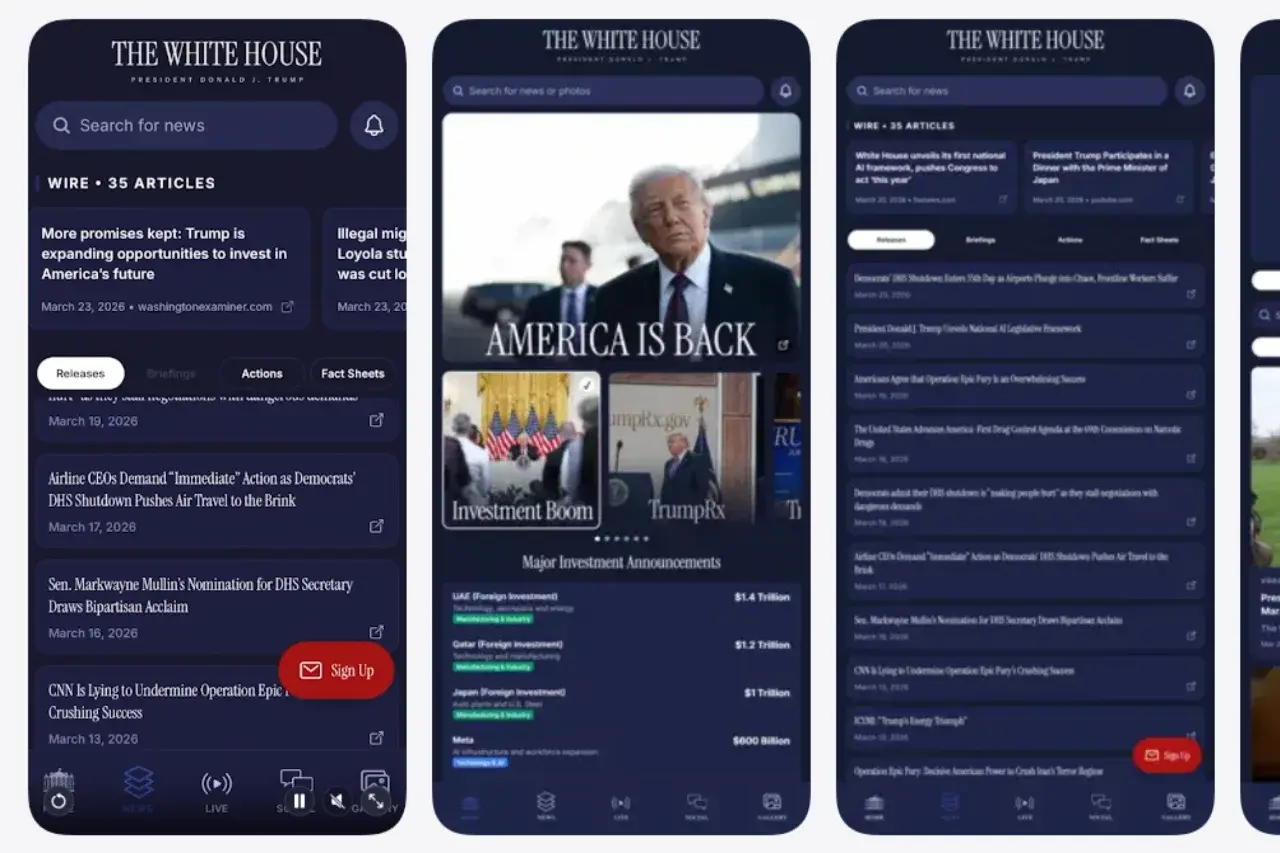 ทำเนียบขาวได้เปิดตัวแอปพลิเคชันสมาร์ตโฟนใหม่ เมื่อวันศุกร์ที่ผ่านมา [ตามเวลาท้องถิ่น] โดยมีวัตถุประสงค์เพื่อให้ประชาชน ได้รับข้อมูลข่าวสารและการอัปเดตโดยตรง จากรัฐบาลของประธานาธิบดี "โดนัลด์ ทรัมป์" โดยความเคลื่อนไหวนี้ถูกมองว่า "เป็นความพยายามเชิงกลยุทธ์ ในการหลีกเลี่ยงสื่อแบบดั้งเดิม" และ "สื่อสารกับสาธารณชน โดยไม่ผ่านการตีความจากบุคคลภายนอก"