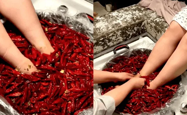 บริการสุดแปลก "นวดและแช่เท้าด้วยหม้อไฟและกองพริก"