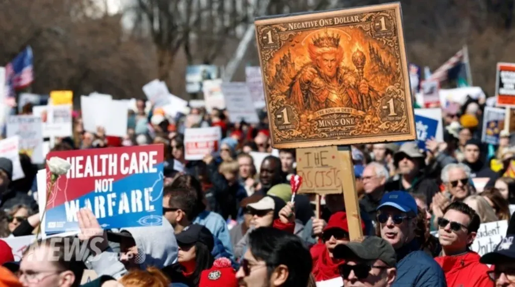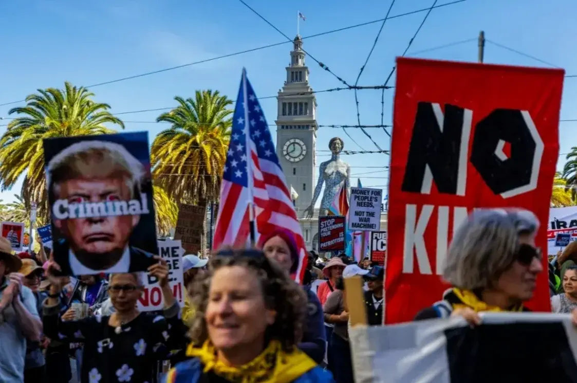 ชาวอเมริกันเกือบ 8 ล้านคนทั่วสหรัฐอเมริกา พร้อมใจกันชุมนุมประท้วงต่อต้านนโยบาย "โดนัลด์ ทรัมป์" พร้อมชูป้าย "No Kings" สื่อว่า "ทรัมป์ เอ็งอย่าทำตัวเป็นกษัตริย์" และ "No war" ไม่เอาสงคราม เพื่อสะท้อนความไม่พอใจต่อผลกระทบจากสงคราม เศรษฐกิจที่หยุดนิ่ง ราคาน้ำมันที่พุ่งสูงขึ้น ในขณะที่รัฐบาลสหรัฐฯ ออกมาตอบโต้การชุมนุมว่า เป็นแค่กิจกรรมของกลุ่มเล็ก ๆ