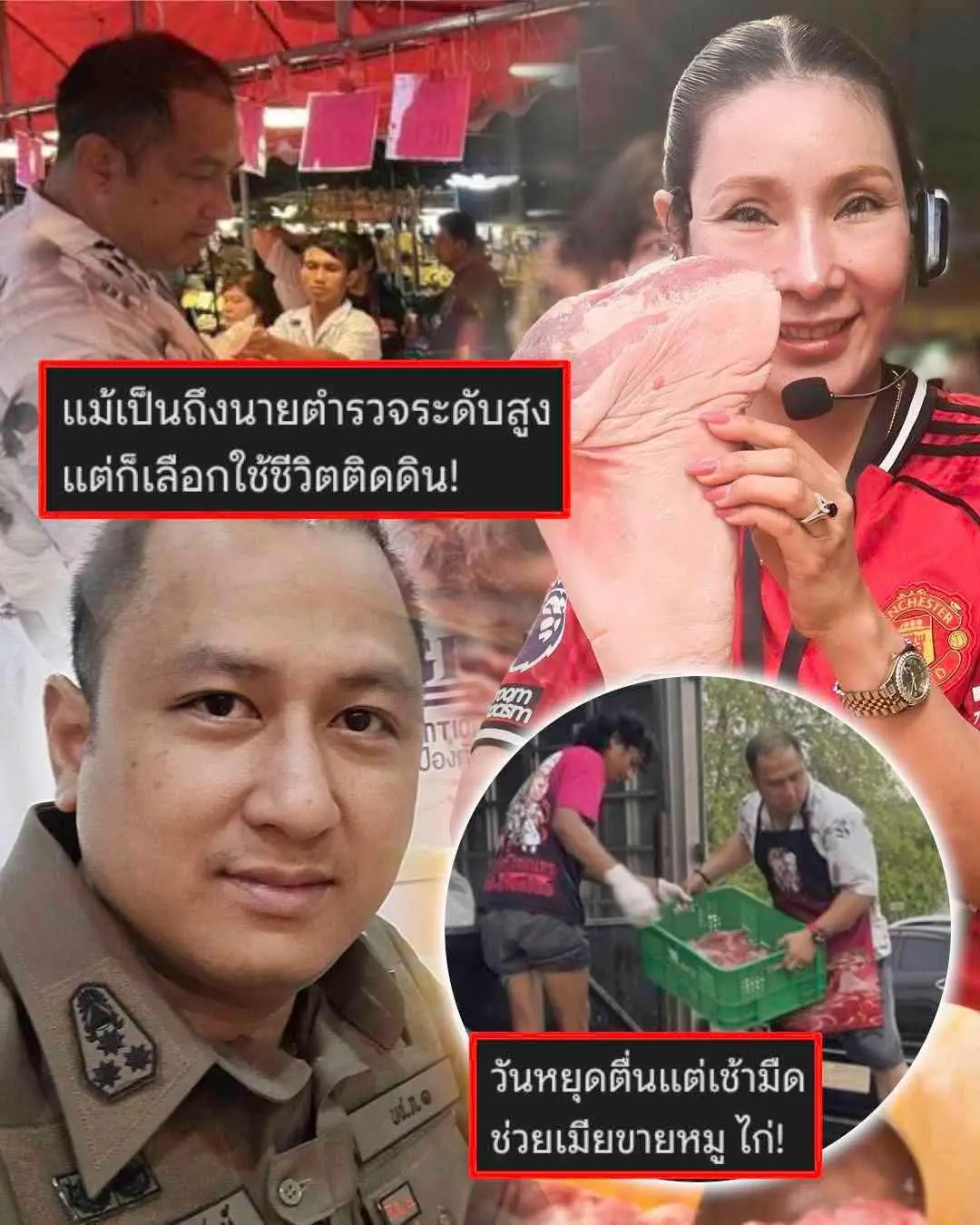 เรื่องราวของ “ผกก.เม” นายตำรวจยศผู้กำกับการ กลายเป็นที่ชื่นชมในโลกออนไลน์ หลังมีการเผยภาพการใช้ชีวิตเรียบง่ายในวันหยุด ด้วยการตื่นตั้งแต่เช้ามืดไปช่วยภรรยาขายหมูสดและไก่สดที่ร้าน “ไอกี้ หมูถูกดีจัง” ดูแลการขนสินค้าและช่วยงานหน้าร้านเหมือนพ่อค้าทั่วไป แม้จะเป็นนายตำรวจระดับสูงที่รับราชการมานานกว่า 20 ปี