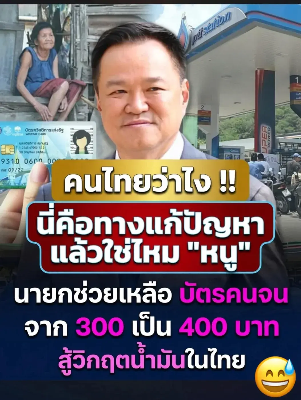 มีรายงานความเคลื่อนไหวด้านมาตรการช่วยเหลือประชาชนในช่วงสถานการณ์ราคาน้ำมันผันผวน โดย อนุทิน ชาญวีรกูล นายกรัฐมนตรี ได้เห็นชอบแนวทางช่วยบรรเทาภาระค่าครองชีพของประชาชน ผ่านการเพิ่มเงินช่วยเหลือให้กับกลุ่มผู้ถือบัตรสวัสดิการแห่งรัฐ หรือบัตรคนจน จำนวน 100 บาทต่อคน เพื่อช่วยลดผลกระทบจากค่าครองชีพและราคาพลังงานที่ปรับตัวสูงขึ้น