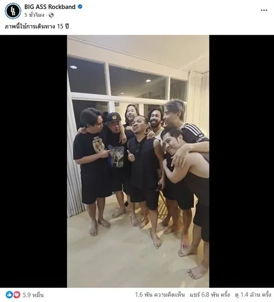 ทำเอาแฟนๆ ถึงกับน้ำตาซึมกันเลยทีเดียว เมื่อเพจเฟซบุ๊ค BIG ASS Rockband ได้เผยคลิปการกลับมารวมตัวกันอีกครั้งของ "แด็กซ์" อดีตนักร้องนำกับสมาชิกในวง งานนี้ก็ร้องไห้กันไม่หยุดทำเอาหนุ่มแด๊กซ์ถึงกับบ่อน้ำตาแตก พร้อมระบุแคปชั่นด้วยว่า “ภาพนี้ใช้การเดินทาง 15 ปี” ท่ามกลางบรรดาเพื่อนๆ ต่างก็แซวว่าร้องไห้อีกแล้ว