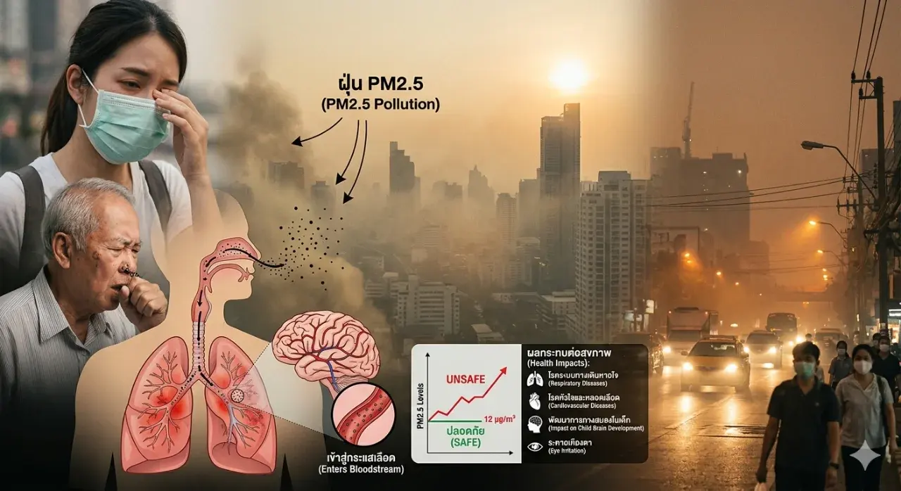 เมื่อค่าฝุ่นพุ่งสูงเกิน 300 มคก./ลบ.ม. จะถูกจัดว่าเป็น "หายนะทางสิ่งแวดล้อม" ซึ่งส่งผลกระทบต่อร่างกายคือ..