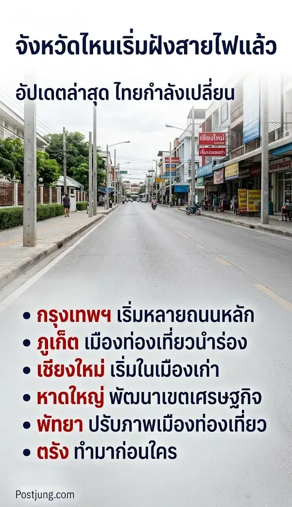 เปิดรายชื่อจังหวัดที่กำลังฝังสายไฟลงดิน ตอนนี้มีที่ไหนเริ่มแล้วบ้าง