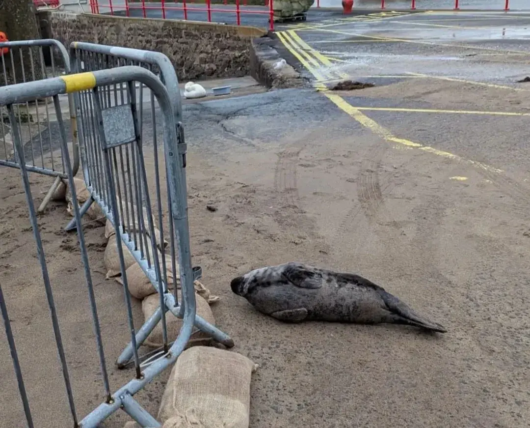 เหตุการณ์ชวนยิ้มท่ามกลางสภาพอากาศเลวร้าย เกิดขึ้นในเมืองเล็กแห่งหนึ่งของ สกอตแลนด์ เมื่อลูกแมวน้ำตัวหนึ่งคลานฝ่าพายุเข้ามานอนแหมะอยู่หน้าร้านค้า ราวกับรู้ว่าจุดนี้คือ “พื้นที่ปลอดภัย” จากคลื่นลมที่โหมกระหน่ำด้านนอก
