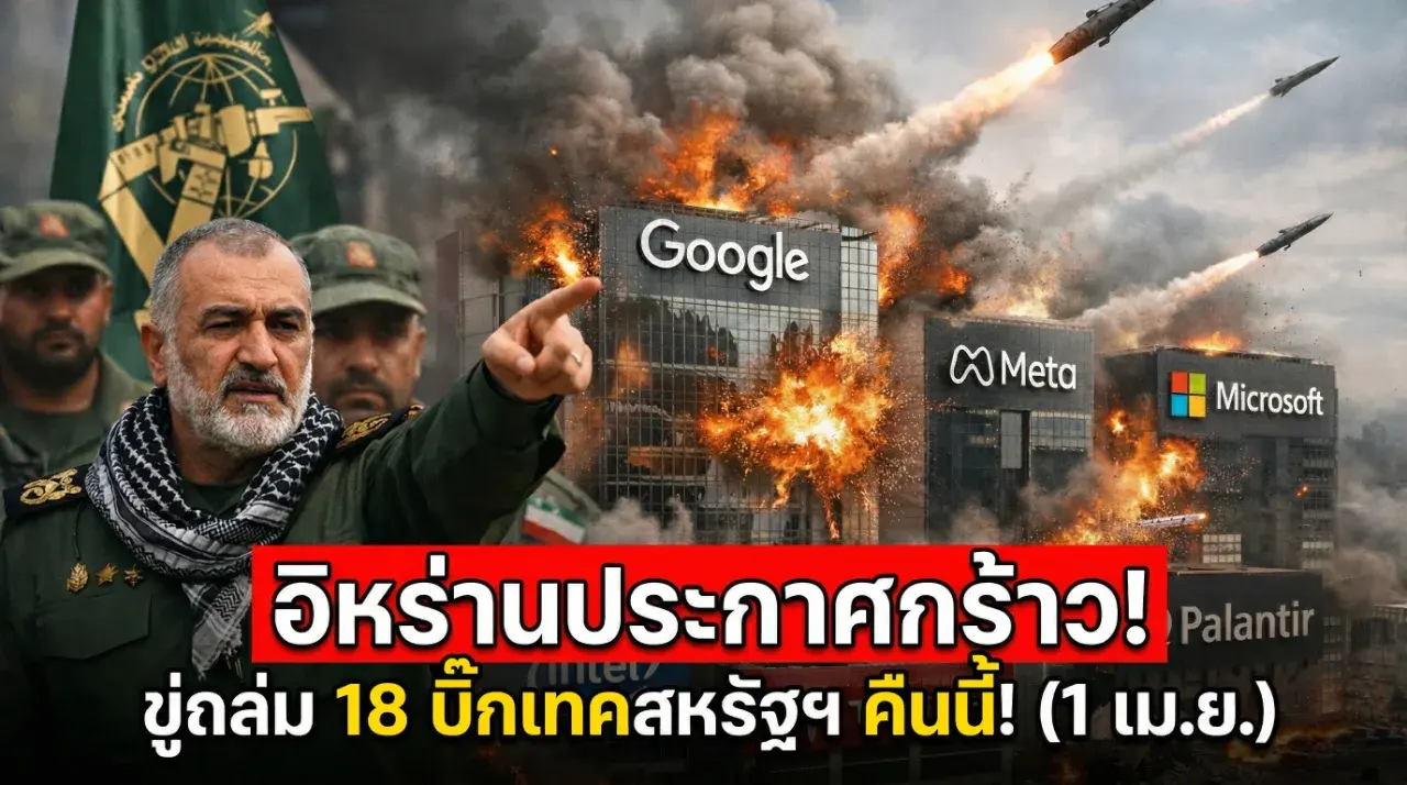 1 เมษายน 69 ตะวันออกกลางระอุ! IRGC อิหร่านประกาศกร้าว ขู่ถล่ม 18 บิ๊กเทคสหรัฐฯ คืนวันที่ 1 เมษายนนี้ ! อ้างเป็นท่อน้ำเลี้ยง 'ระบอบก่อการร้าย' สหรัฐฯ-อิสราเอล