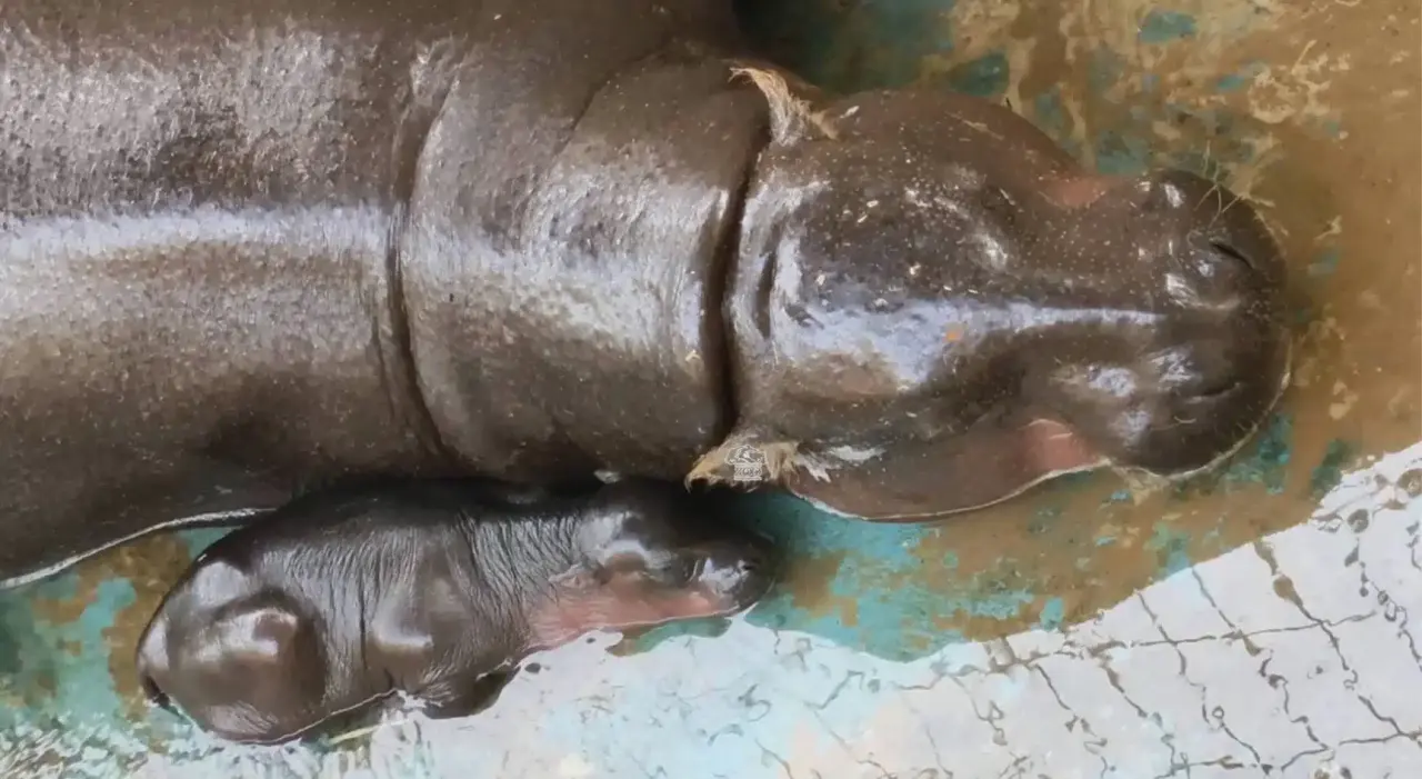สวนสัตว์นครราชสีมาได้ประกาศข่าวดีว่า แม่หมูกรอบได้ให้กำเนิดลูกฮิปโปแคระ