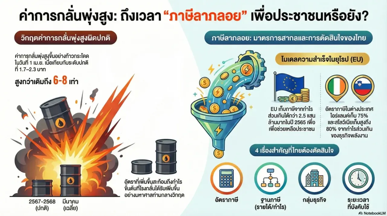 3. คำถามถึงรัฐบาล: จะรอให้ประชาชน "ตายก่อน" หรือจะเริ่มเก็บภาษีไอ้โม่ง? ในขณะที่ประเทศอื่นเขาเอาเงินกำไรส่วนเกินมหาศาลนี้กลับมาช่วยลดผลกระทบทางเศรษฐกิจให้ประชาชน แต่ประเทศไทยเรากลับปล่อยให้โรงกลั่นฟันกำไร "ลาภลอย" นี้ไปหน้าตาเฉย ถึงเวลาหรือยังที่รัฐบาลไทยต้องตัดสินใจให้ชัดเจนว่าจะเก็บเท่าไหร่? จะเก็บจากรายได้หรือกำไร? และจะเก็บนานแค่ไหน?