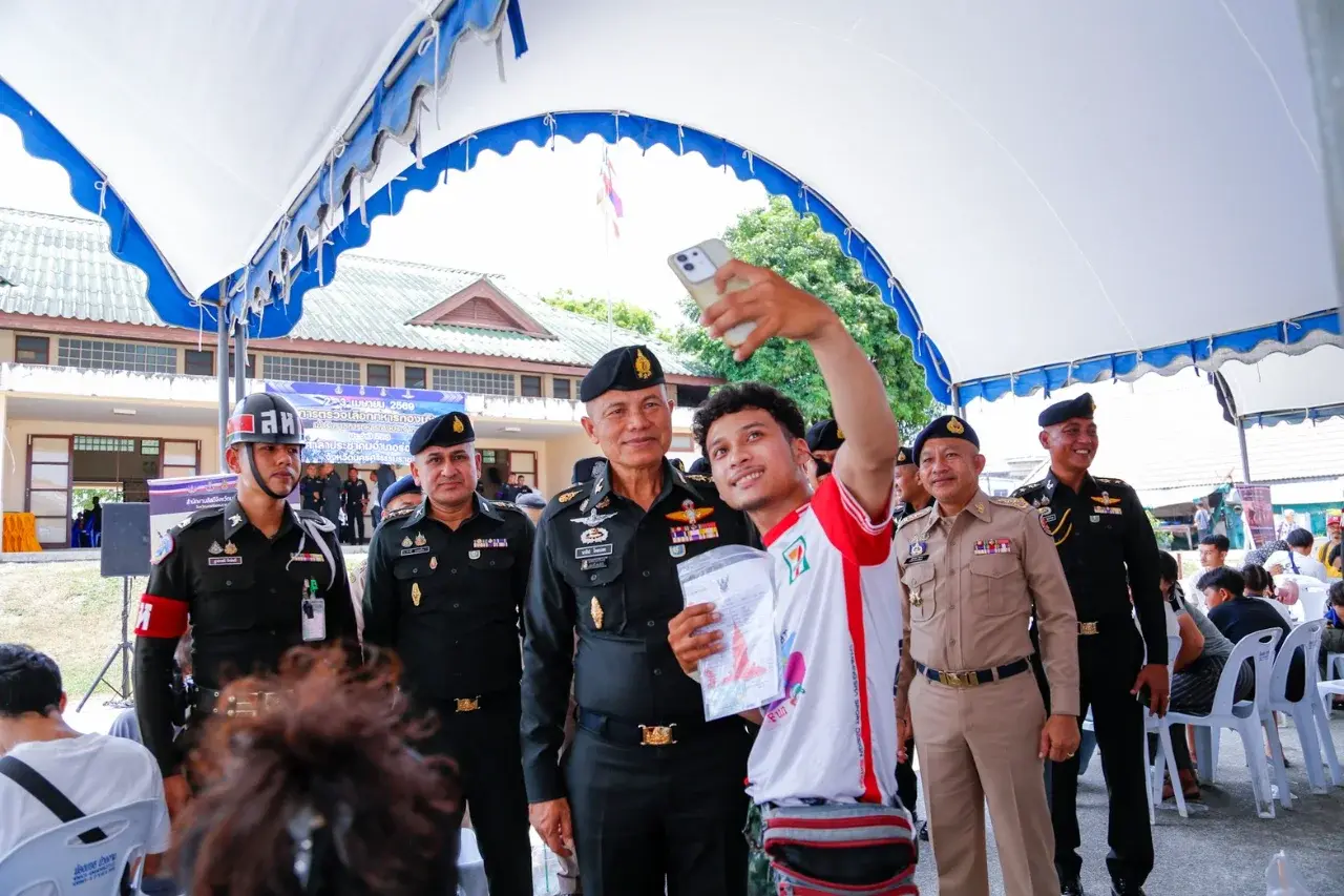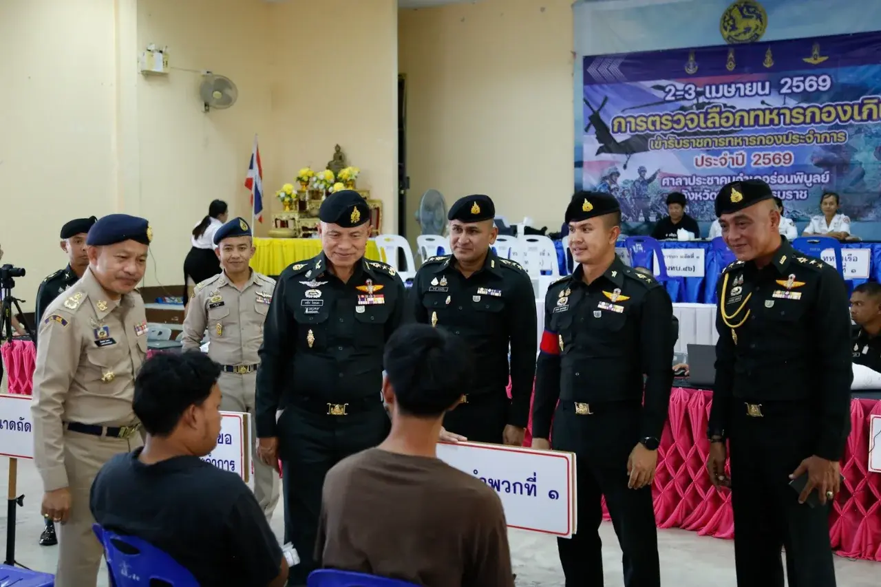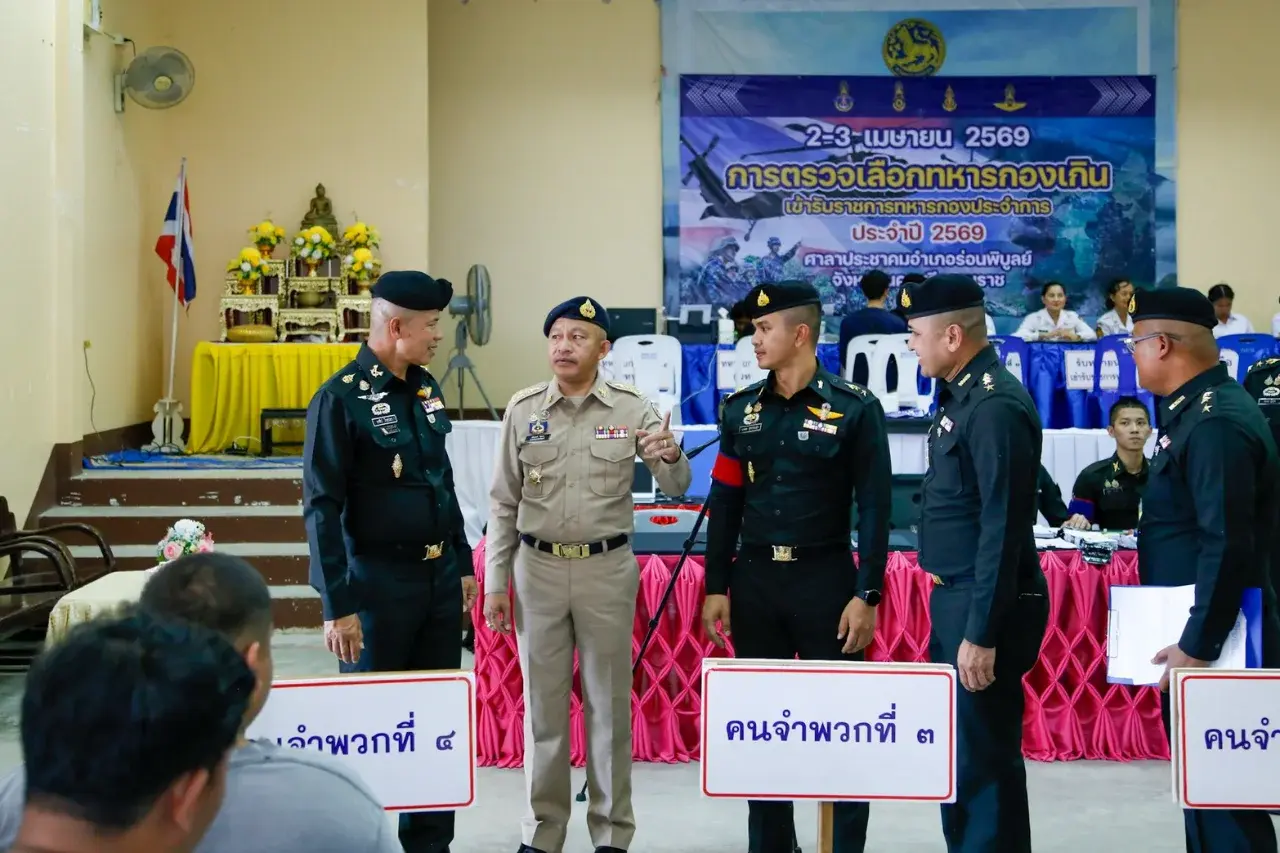 ศาลาประชาคม ที่ว่าการอำเภอร่อนพิบูลย์ จังหวัดนครศรีธรรมราช พลโท นรธิป โพยนอก แม่ทัพภาคที่ 4 พร้อมด้วยคณะผู้บังคับบัญชา เดินทางลงพื้นที่เพื่อตรวจเยี่ยมและสังเกตการณ์กระบวนการตรวจเลือกทหารกองเกินเข้ารับราชการทหารกองประจำการ ประจำปี 2569 ของพื้นที่อำเภอร่อนพิบูลย์