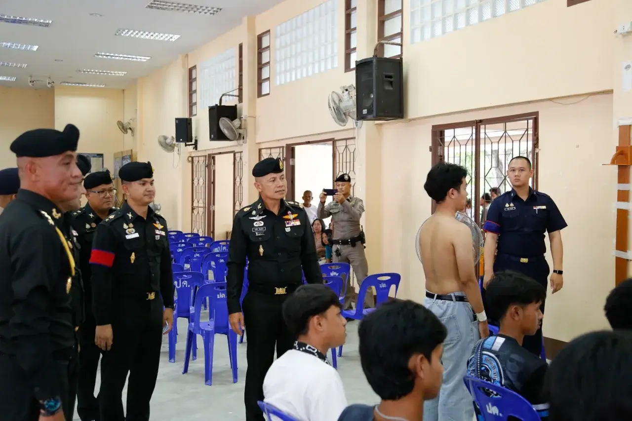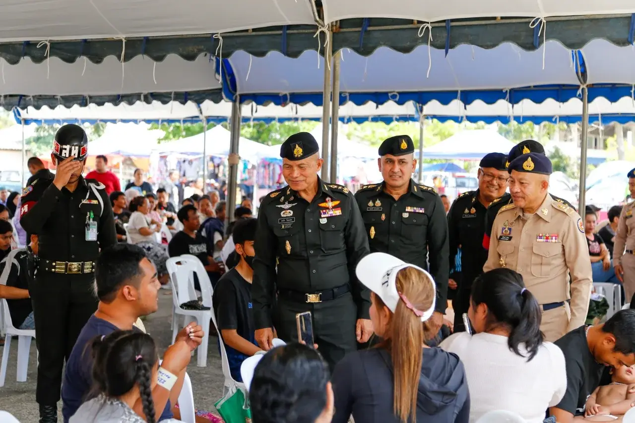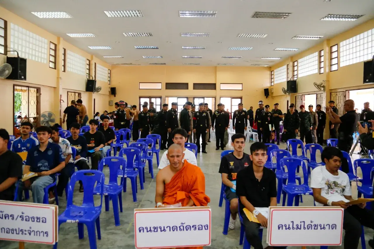 ศาลาประชาคม ที่ว่าการอำเภอร่อนพิบูลย์ จังหวัดนครศรีธรรมราช พลโท นรธิป โพยนอก แม่ทัพภาคที่ 4 พร้อมด้วยคณะผู้บังคับบัญชา เดินทางลงพื้นที่เพื่อตรวจเยี่ยมและสังเกตการณ์กระบวนการตรวจเลือกทหารกองเกินเข้ารับราชการทหารกองประจำการ ประจำปี 2569 ของพื้นที่อำเภอร่อนพิบูลย์