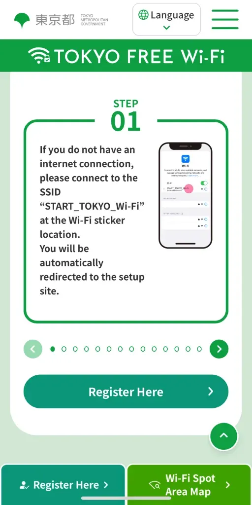 ในส่วนของขั้นตอนการลงทะเบียนนั้นทำได้ไม่ยุ่งยาก และ มีคำแนะนำเป็นภาษาอังกฤษให้ใช้งาน เมื่อทำการลงทะเบียนเรียบร้อยแล้ว ผู้ใช้จะสามารถเชื่อมต่อ Wi-Fi ได้โดยอัตโนมัติในครั้งต่อไป และ สำหรับผู้ที่ยังไม่มีอินเทอร์เน็ต สามารถเปิด Wi-Fi บนโทรศัพท์ขณะอยู่ใกล้ตู้โทรศัพท์ และ เลือกเชื่อมต่อเครือข่ายชื่อ START_TOKYO_Wi-Fi จากนั้นหน้าลงทะเบียนจะปรากฏขึ้นโดยอัตโนมัติ