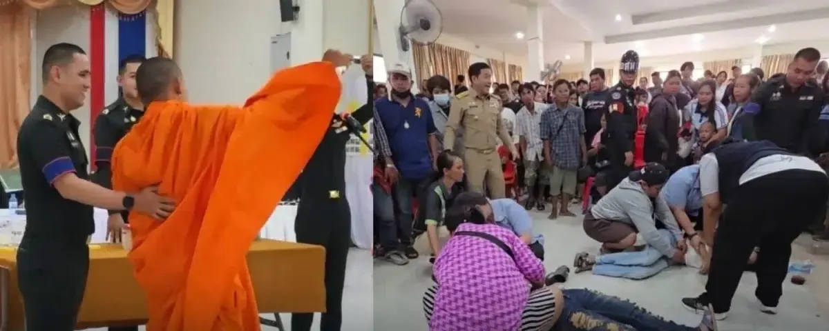 พระจับใบดำ-ใบแดง กองเชียร์เป็นลม 3 คนรวด คนโดนใบแดงสุดท้ายแทบทรุด