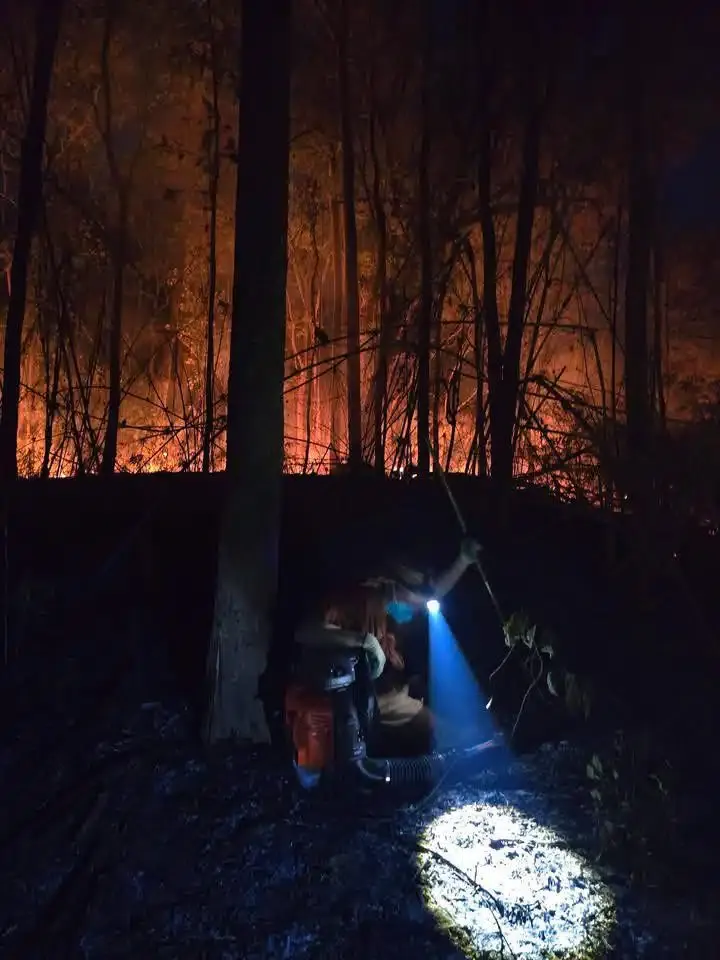 อย่างไรก็ตาม ด้วยสภาพพื้นที่ที่เป็นป่าสูงชัน ประกอบกับช่วงเวลากลางคืนที่มืดสนิท และไฟที่ลุกลามอย่างรุนแรง ทำให้การปฏิบัติงานเป็นไปด้วยความยากลำบาก จนต้องตัดสินใจถอนกำลังออกจากพื้นที่เพื่อความปลอดภัย