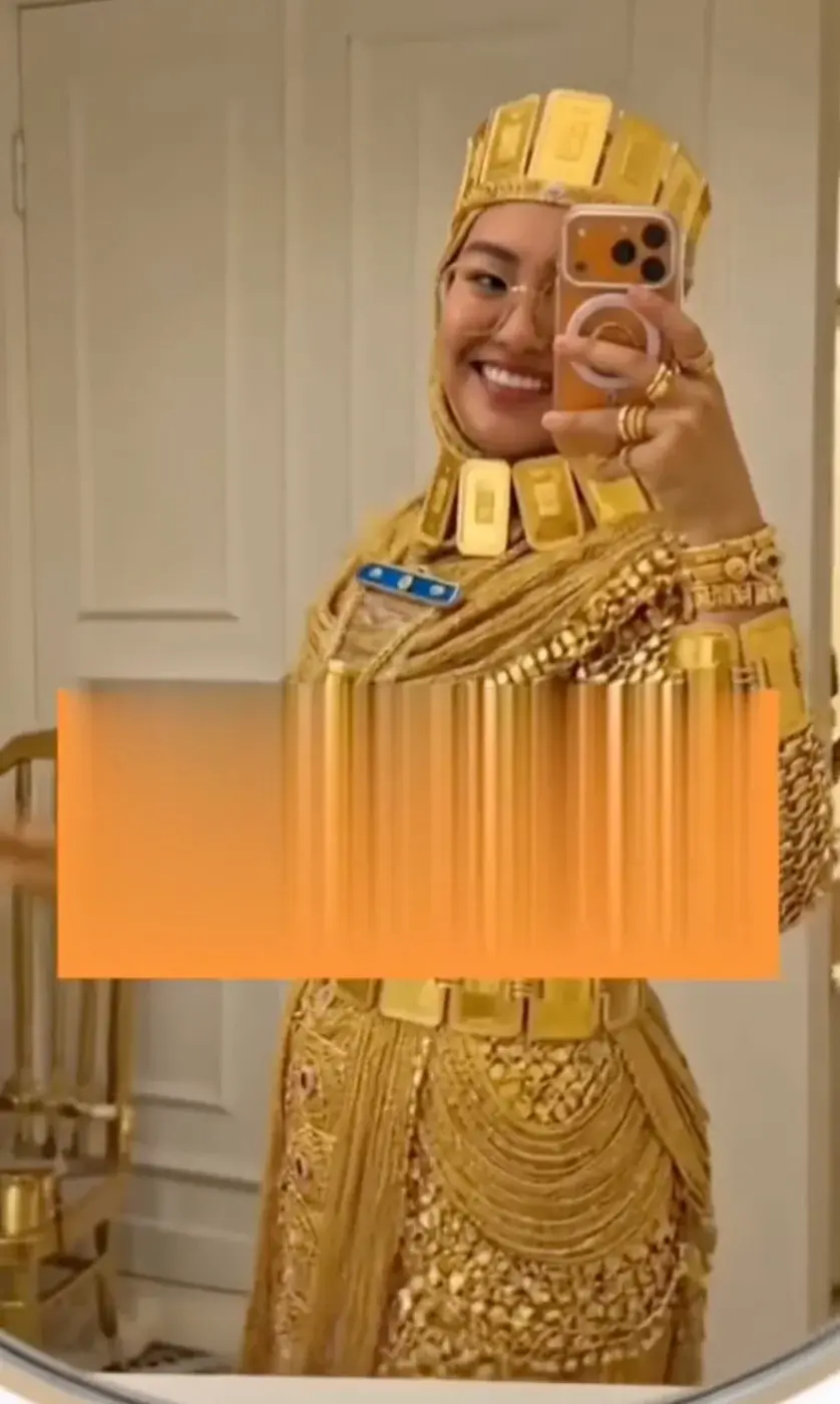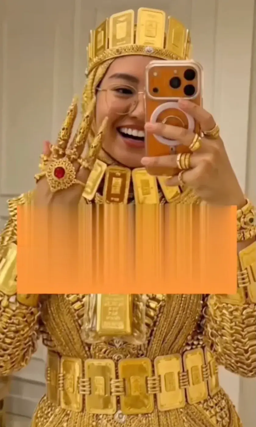 กระแสไวรัลบนโซเชียลมีเดียกำลังจับจ้องไปที่ "เจ้าสาวทองคำ" จากงานแต่งงานในดูไบ หลังคลิปวิดีโอสั้นเผยให้เห็นลุคสุดตระการตาที่เต็มไปด้วยทองตั้งแต่ศีรษะจรดปลายเท้า