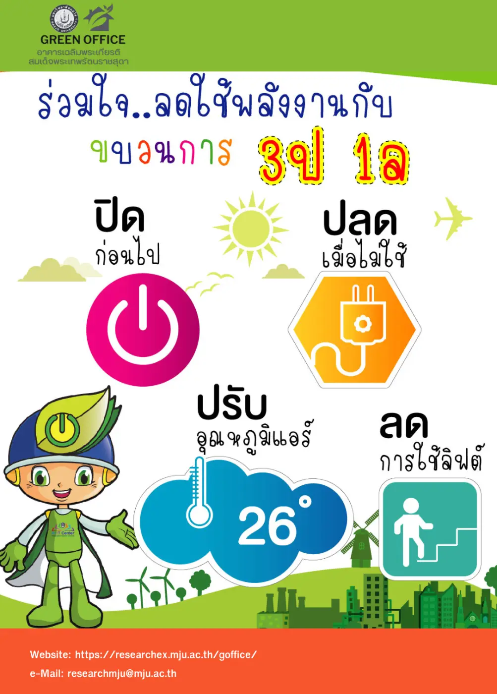 - ปิดไฟ ปิดแอร์ เมื่อไม่ใช้งาน