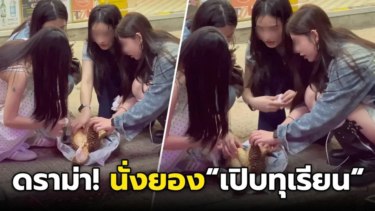 ดราม่า! 4 สาวสวยนั่งยอง “เปิบทุเรียน” กลางถนน ชาวเน็ตถกสนั่น มารยาทหรือสีสัน?