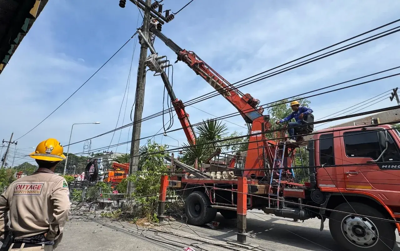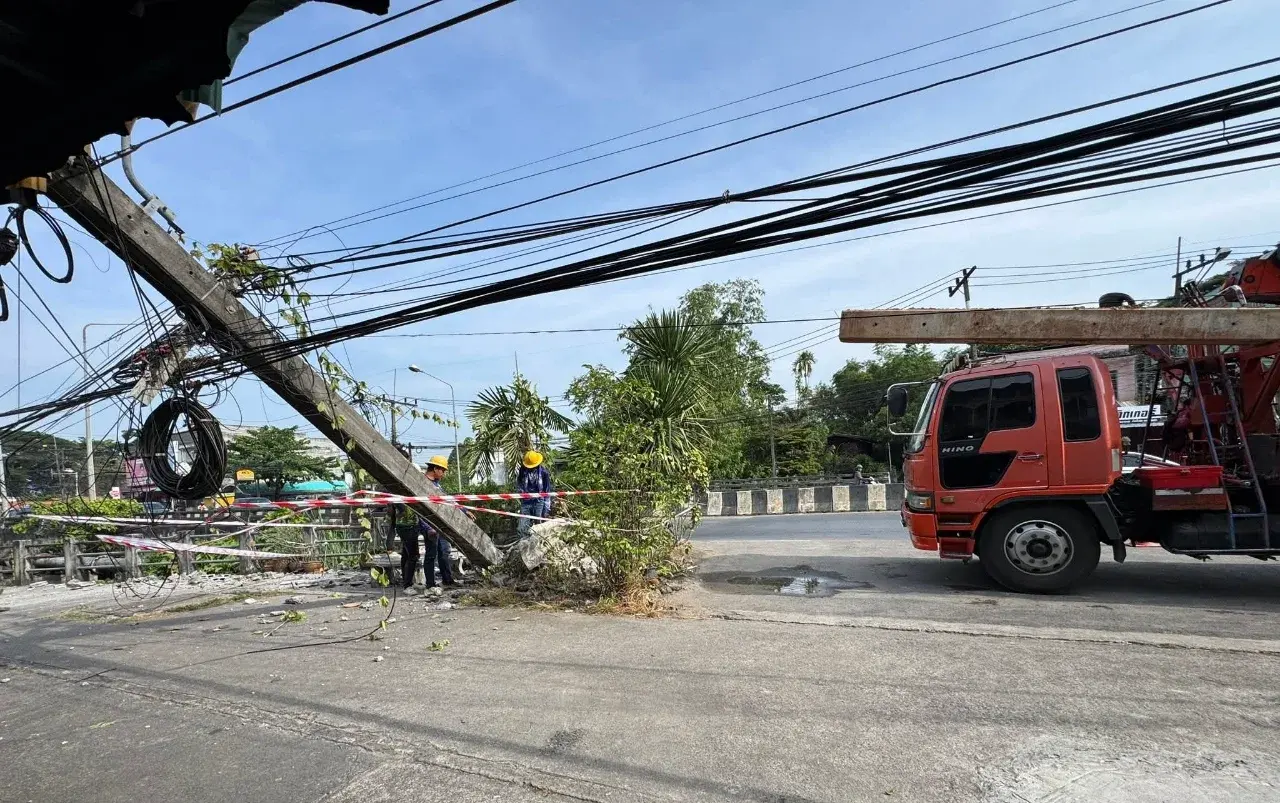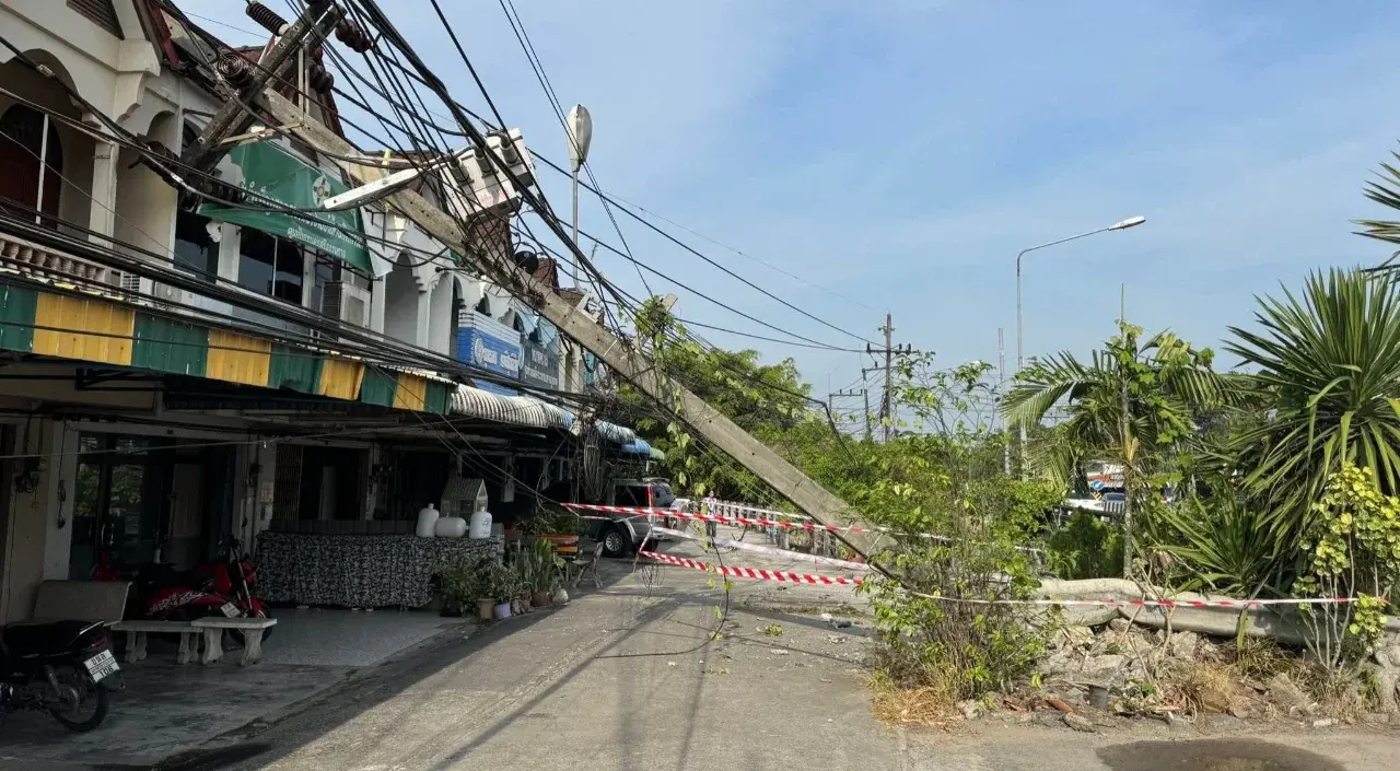 กล้องชัด!กระบะอัดเสาไฟฟ้าคอสะพาน รถพังยับ เสาไฟฟ้าล้ม