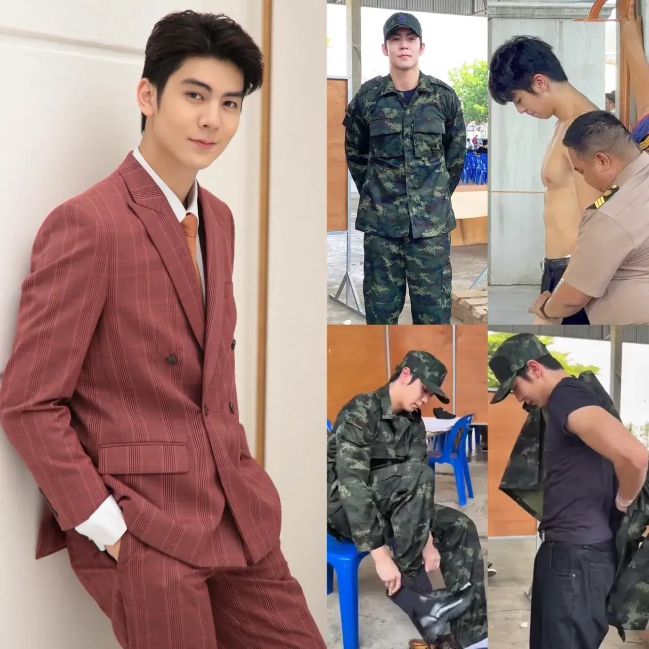 คือภาพฟิตติ้งในชุดทหารบกของ Wachirawit Watthanaphakdeephaisan