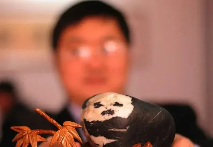 บนพื้นผิวของหินปรากฏลวดลายธรรมชาติ ที่ดูเหมือนภาพของหมีแพนด้าตัวใหญ่อยู่ข้างๆหมีแพนด้าตัวเล็ก โดยรายละเอียดคมชัดและมีชีวิตชีวา จนทำให้รู้สึกเหมือนภาพกำลังเคลื่อนไหว ด้วยประสบการณ์หลายปีในวงการสะสม เขาตระหนักทันทีว่า "นี่ไม่ใช่หินธรรมดา" เขาจึงตัดสินใจนำหินก้อนนี้กลับบ้าน ในฐานะของล้ำค่า... ไม่นานเรื่องราวก็แพร่กระจายในกลุ่มเพื่อนฝูง และ ดึงดูดความสนใจจากผู้คนจำนวนมาก มีผู้เสนอซื้อในราคามากกว่า 1 ล้านหยวน แต่เขาปฏิเสธทั้งหมด เพราะเชื่อว่ามูลค่าของหินก้อนนี้ไม่ได้อยู่ที่เงินเพียงอย่างเดียว