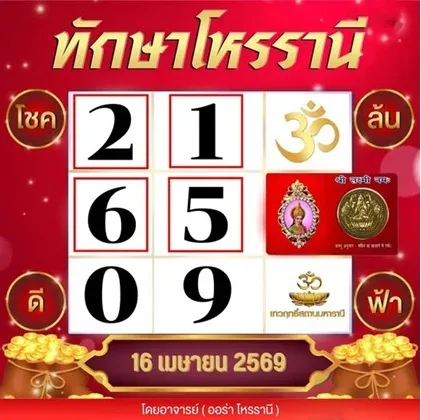 สำหรับหวยตารางทักษามหารานี ของสำนัก "อาจารย์ออร่า มหารานี" ในงวดวันที่ 16 เม.ย.69 นี้ มีเลขเด็ดเลขท้าย 3 คือ 159, 509, 106, 625, 062 ส่วนเลขท้าย 2 ตัวก็มี 59, 09, 06, 25, 62, 69, 51, 95, 55, 92