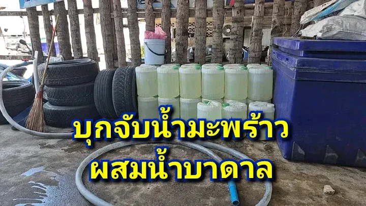บุกจับโรงงานผลิตน้ำมะพร้าวปลอมในสมุทรสงคราม