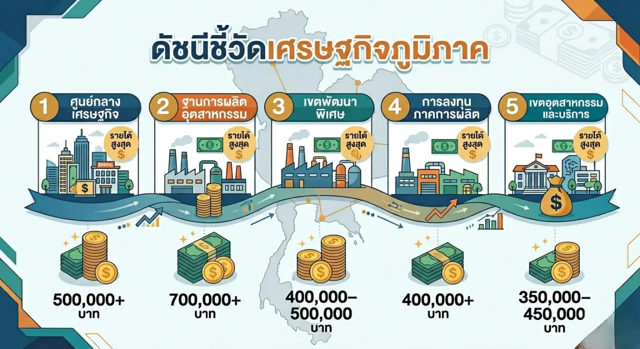 จากภาพรวมจะเห็นว่า จังหวัดที่มีรายได้สูงมักเกี่ยวข้องกับ 5 ปัจจัยหลัก ได้แก่ การเป็นศูนย์กลางเศรษฐกิจ ฐานการผลิตอุตสาหกรรม เขตพัฒนาพิเศษ การลงทุนภาคการผลิต และภาคบริการขนาดใหญ่ ซึ่งทั้งหมดนี้ล้วนเป็นแรงขับเคลื่อนสำคัญที่ทำให้รายได้ของประชากรในพื้นที่เหล่านี้สูงกว่าค่าเฉลี่ยของประเทศอย่างชัดเจน