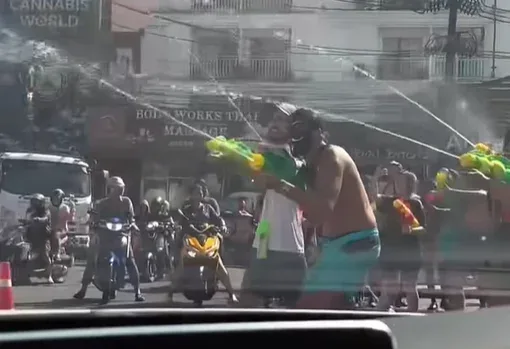 รวมไปถึงคนทำมาหากินอย่างคนขับรถตู้คันนี้ ที่ถูกนักท่องเที่ยวรุมป่วนด้วยการเปิดประตูรถทั้งฝั่งคนขับและฝั่งคนนั่งข้างหน้า ทั้งยังเปิดกะโปรงหลังรถตู้ จากนั้นพากันฉีดน้ำเข้าไปภายในตัวรถ จนคนขับต้องลงมาพยายามห้าม แต่สถานการณ์ก็ไม่ดีขึ้น จนเจ้าหน้าที่ตำรวจต้องเข้าควบคุมสถานการณ์ในเวลาต่อมา