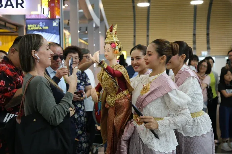 ภายในสนามบินมีการแจกของที่ระลึกธีมสงกรานต์ให้กับผู้โดยสารที่เดินทางเข้า-ออกประเทศ สร้างความประทับใจตั้งแต่ก้าวแรกที่เหยียบแผ่นดินไทย ขณะเดียวกันยังมีการแสดง “หุ่นละครเล็ก” ศิลปะชั้นสูงของไทยที่หาชมได้ยาก มาถ่ายทอดเรื่องราววัฒนธรรมไทยอย่างงดงาม สร้างสีสันและดึงดูดสายตานักท่องเที่ยวจำนวนมาก