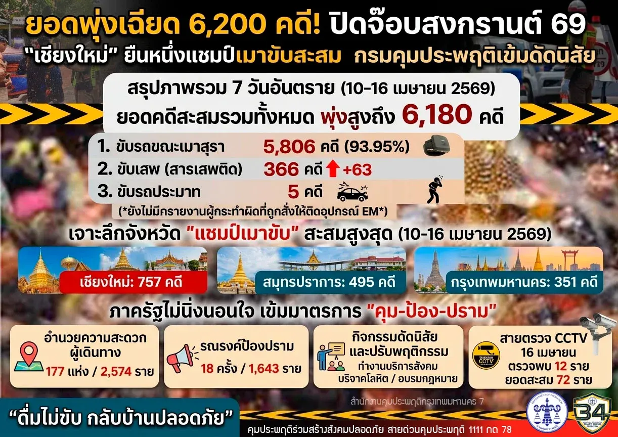 ยอดพุ่งเฉียด 6,200 คดี! ปิดจ็อบสงกรานต์ 69 "เชียงใหม่" ยืนหนึ่งแชมป์เมาขับสะสม กรมคุมประพฤติเข้มดัดนิสัย