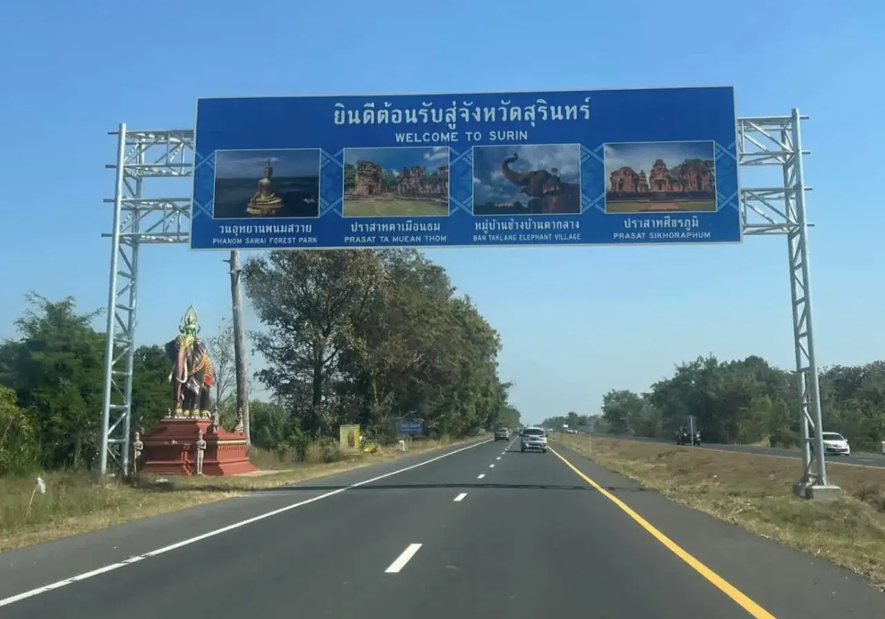 ดราม่าร้อน! โซเชียลกัมพูชาวิพากษ์ “ป้ายทางหลวงสุรินทร์” หลังมีภาพปราสาทตาเมือนธม