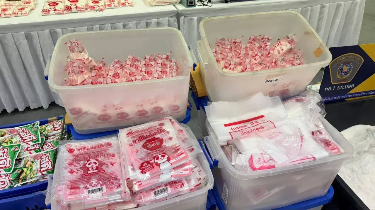 ของกลางที่ยึดได้รวมกว่า 24,918 ชิ้น ทั้งสินค้าสำเร็จรูป ซองบรรจุปลอม วัตถุดิบจำนวนมาก และรถขนส่งอีก 1 คัน มูลค่าความเสียหายเกือบ 2 ล้านบาท