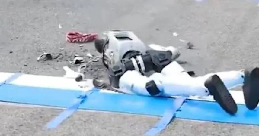 "หุ่นยนต์ฮิวมานอยด์" วิ่งฮาล์ฟมาราธอนที่ปักกิ่ง สะดุดล้มอย่างแรง ชิ้นส่วนกระจายไปทั่วพื้น