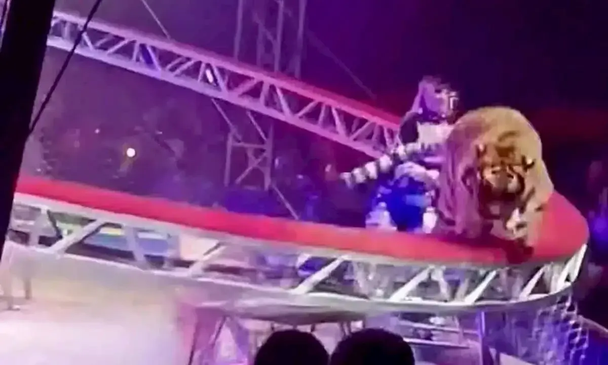 นาทีระทึก! เสือคณะละครพุ่งใส่คนดู หลังตาข่ายพัง คนดูช็อกทั้งฮอลล์